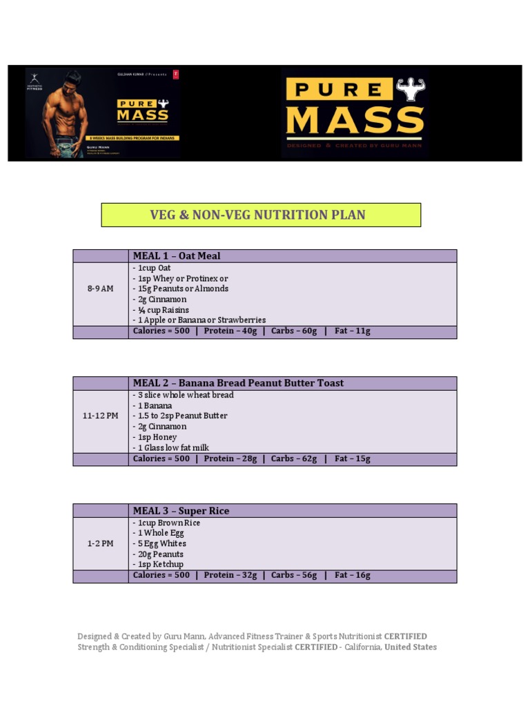 2 minute rest after each set. Microsoft Word - Pure Mass Nutrition Plan by Guru Manndocx Created Date. Guru Mann Fitness Guru Mann Fitness Inc.